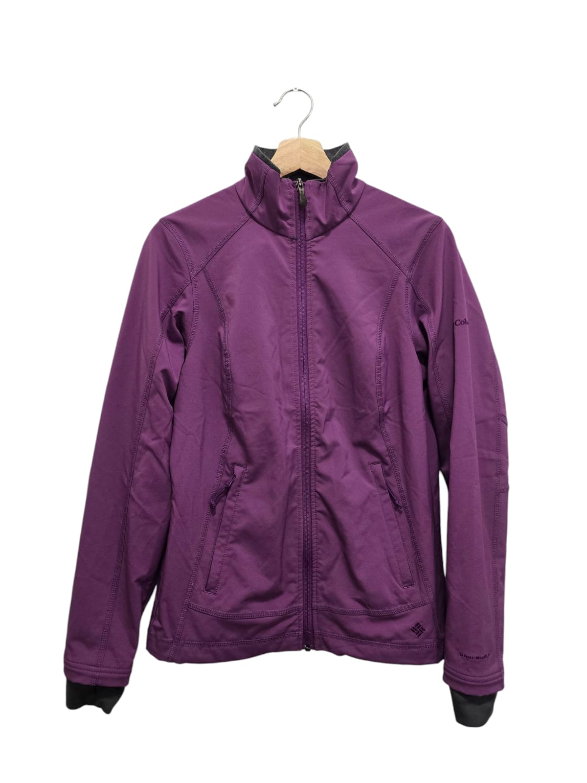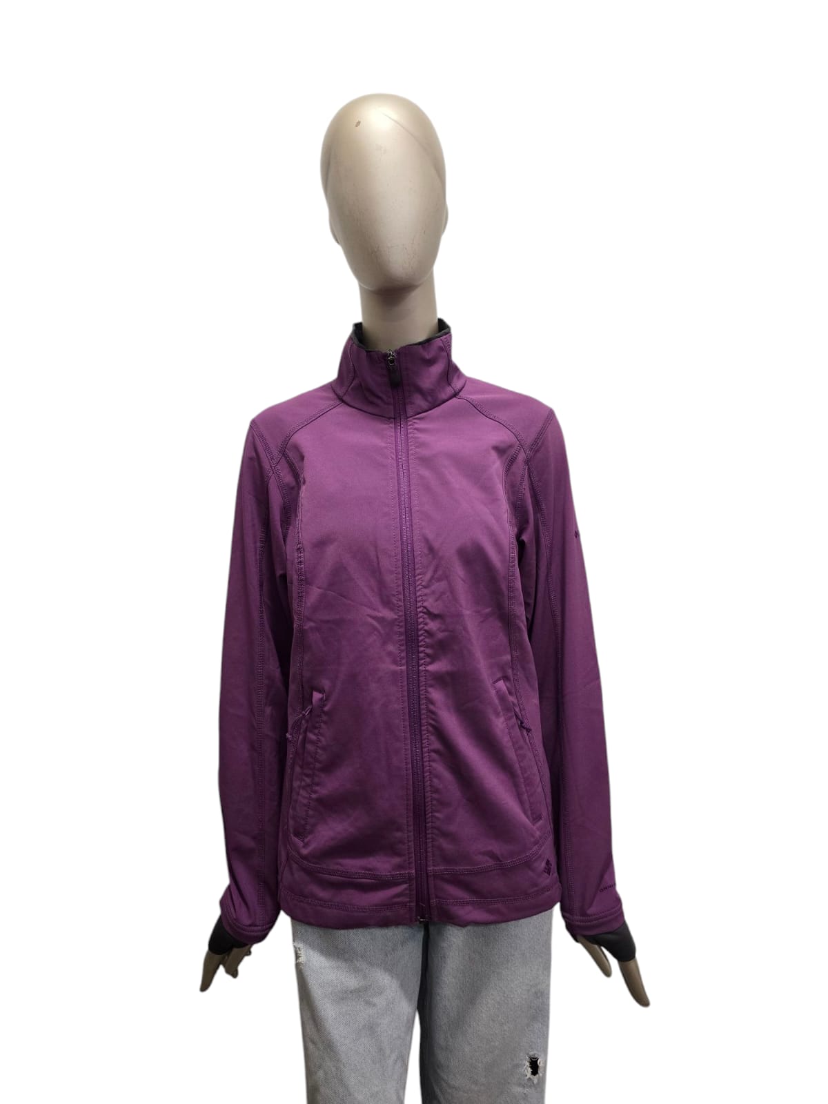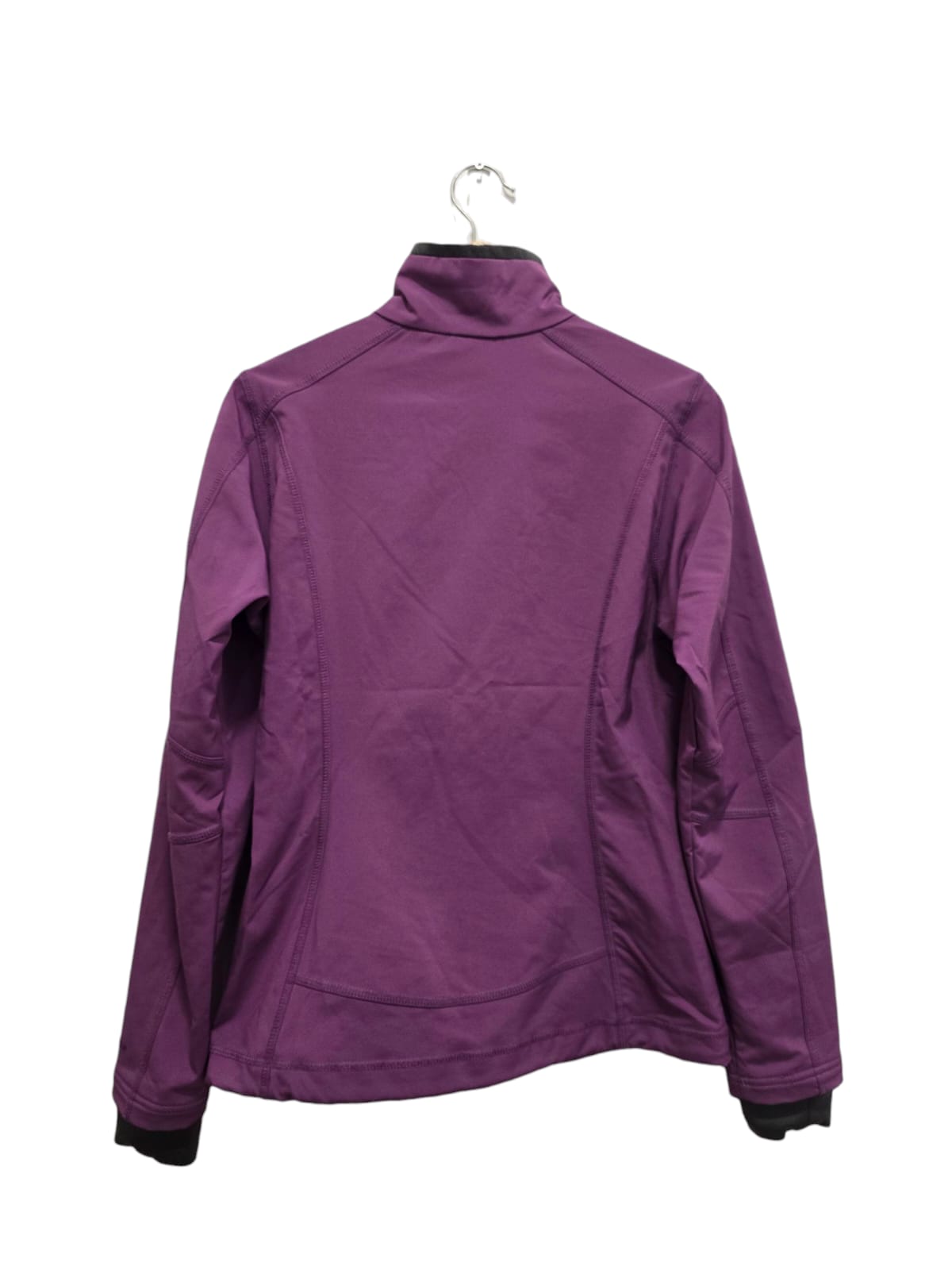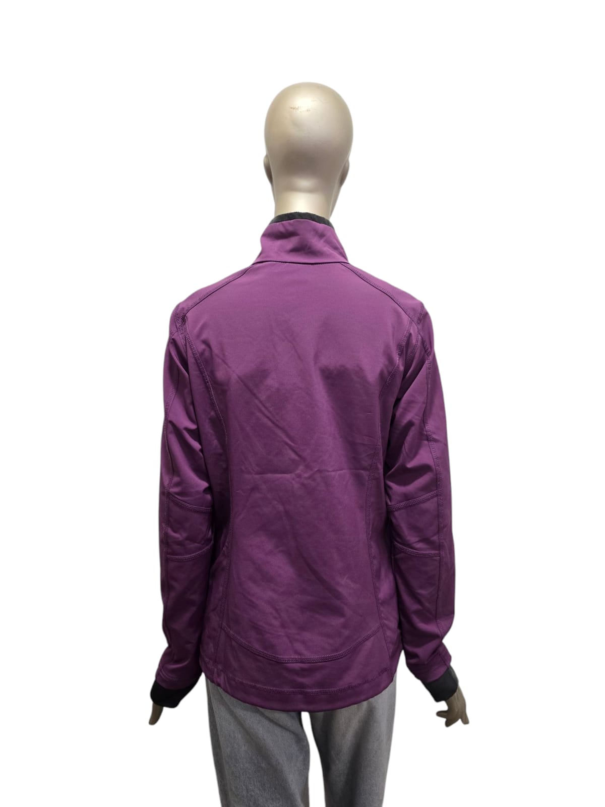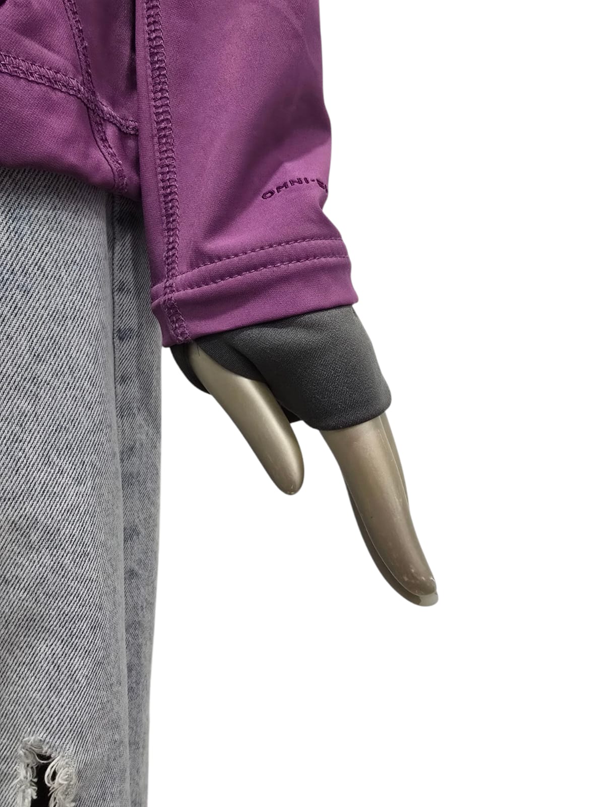 Casaco em tecido roxo com malha cinza nos punhos com abertura para o polegar