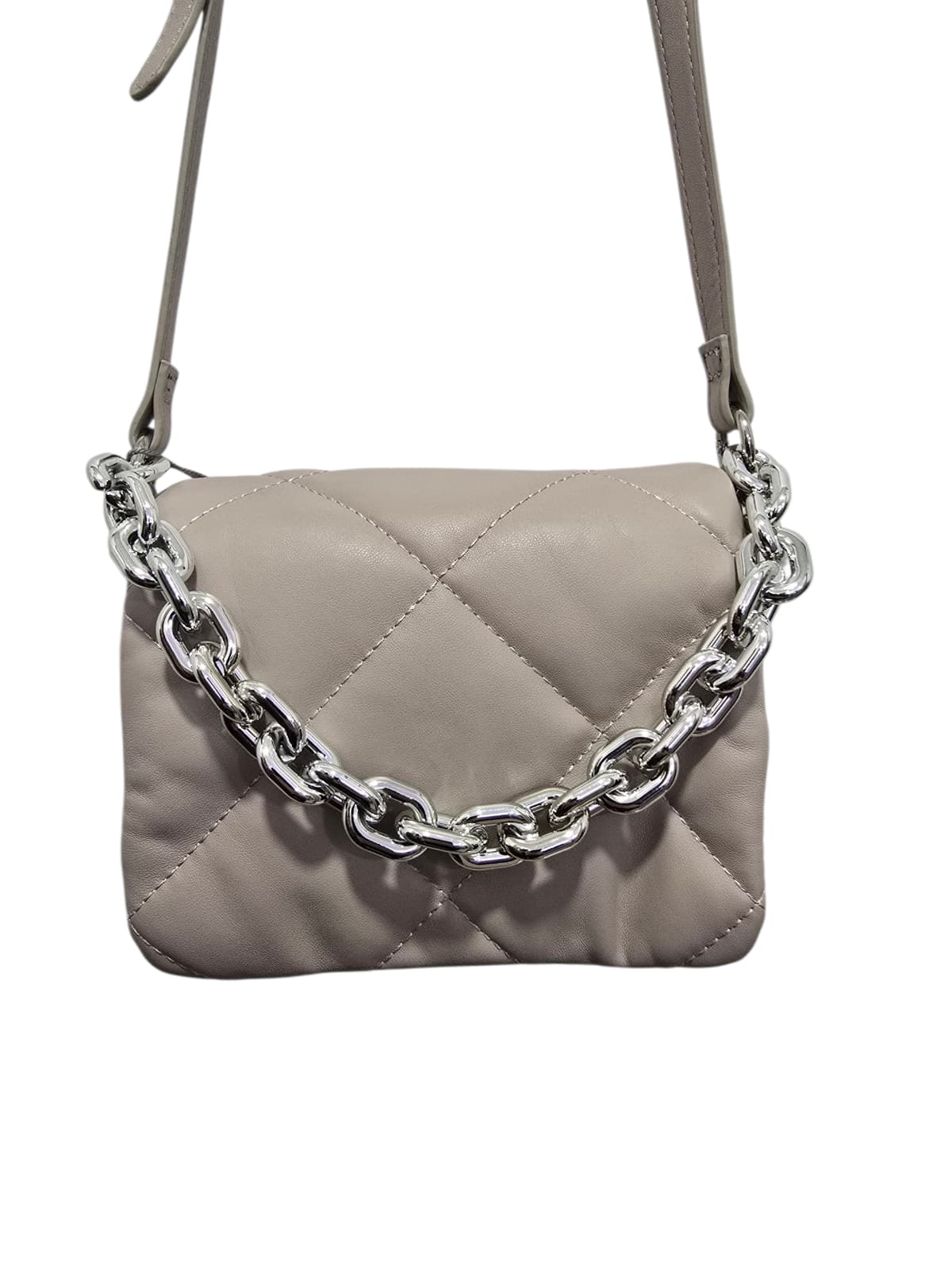 Mala em pele sintética estilo puffer com pormenor de alça corrente e alça a tiracolo