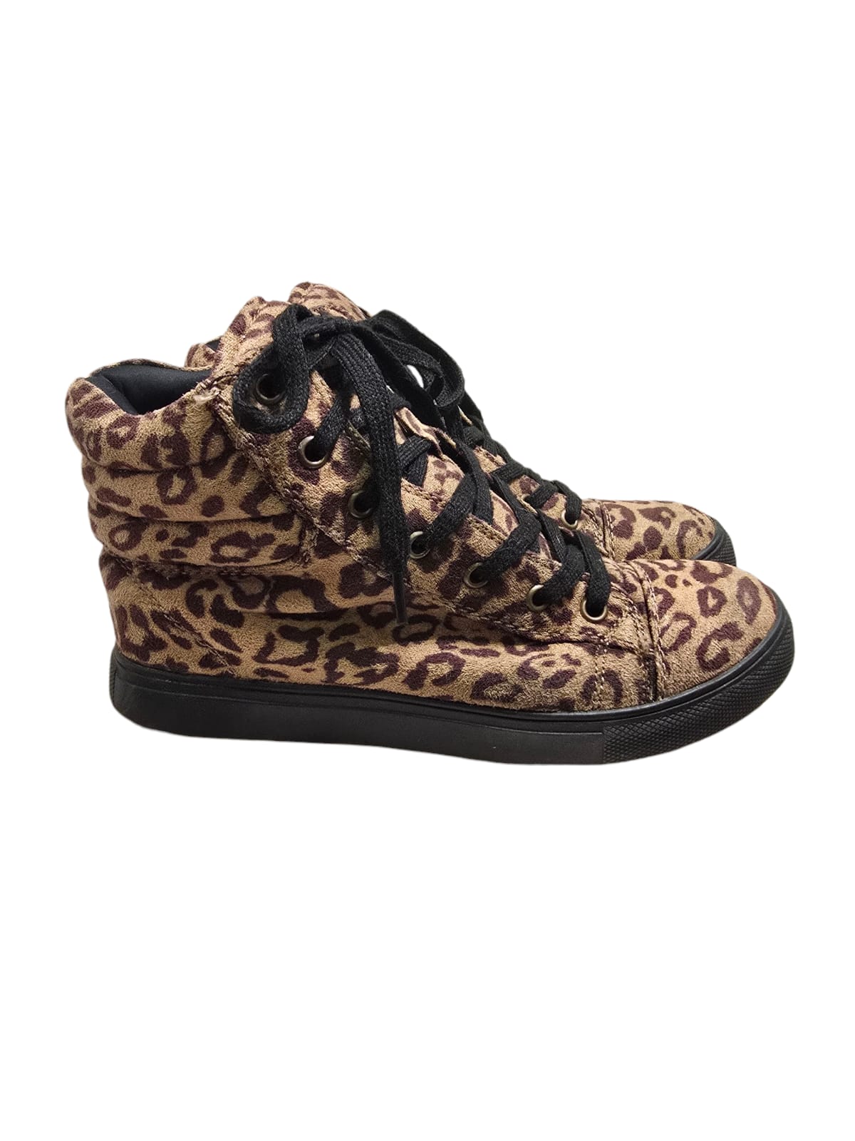 Sapatilhas tipo bota em tecido castanho padrão animal
