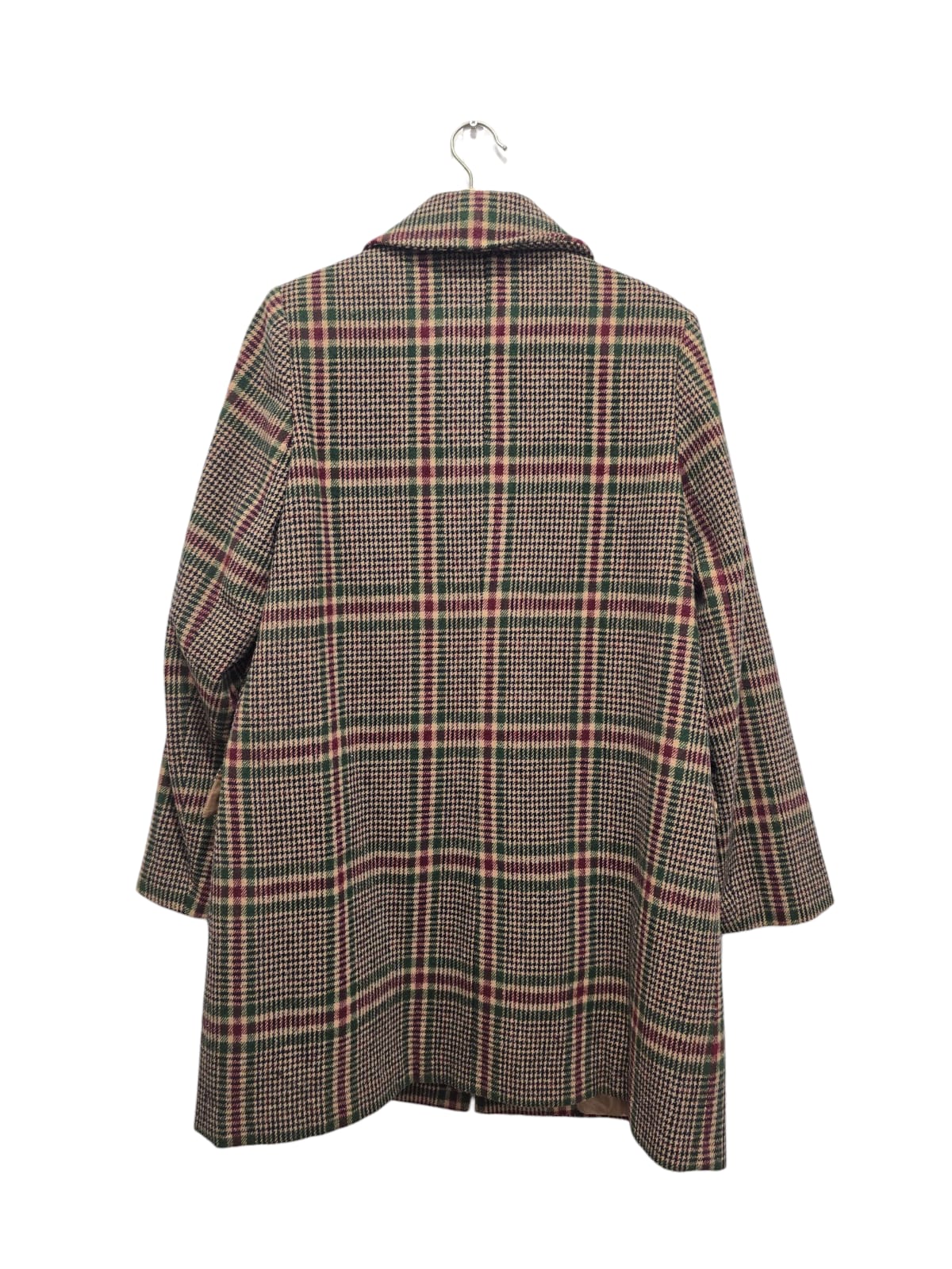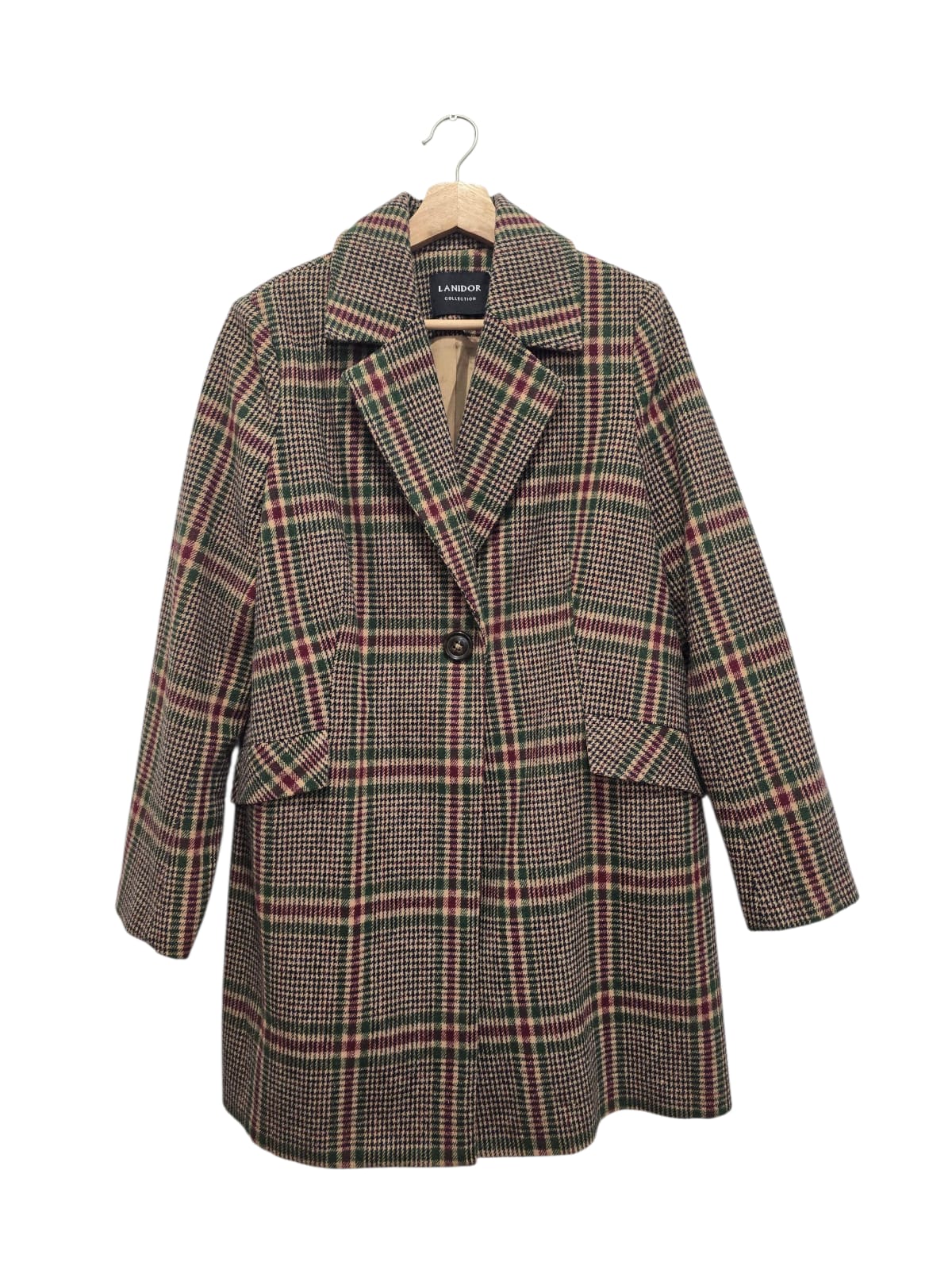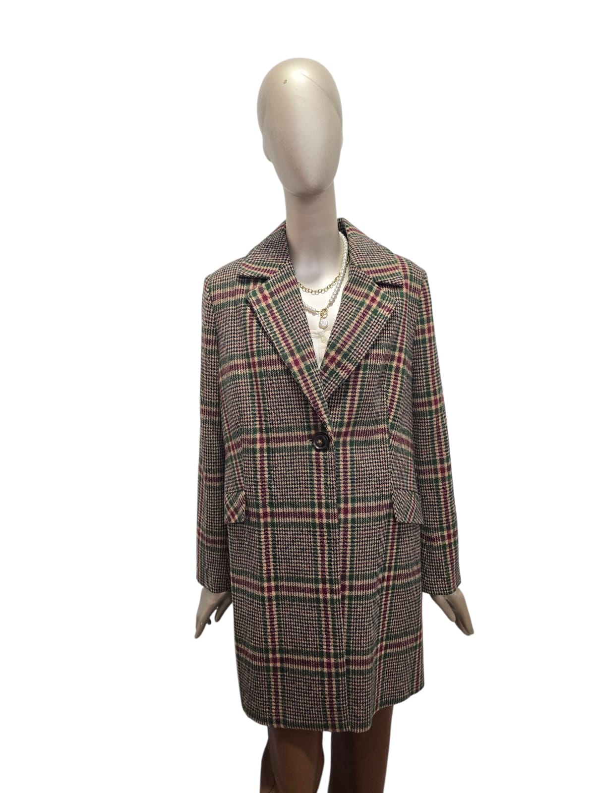 Sobretudo ao xadrez verde, bege e vermelho com bolsos frontais