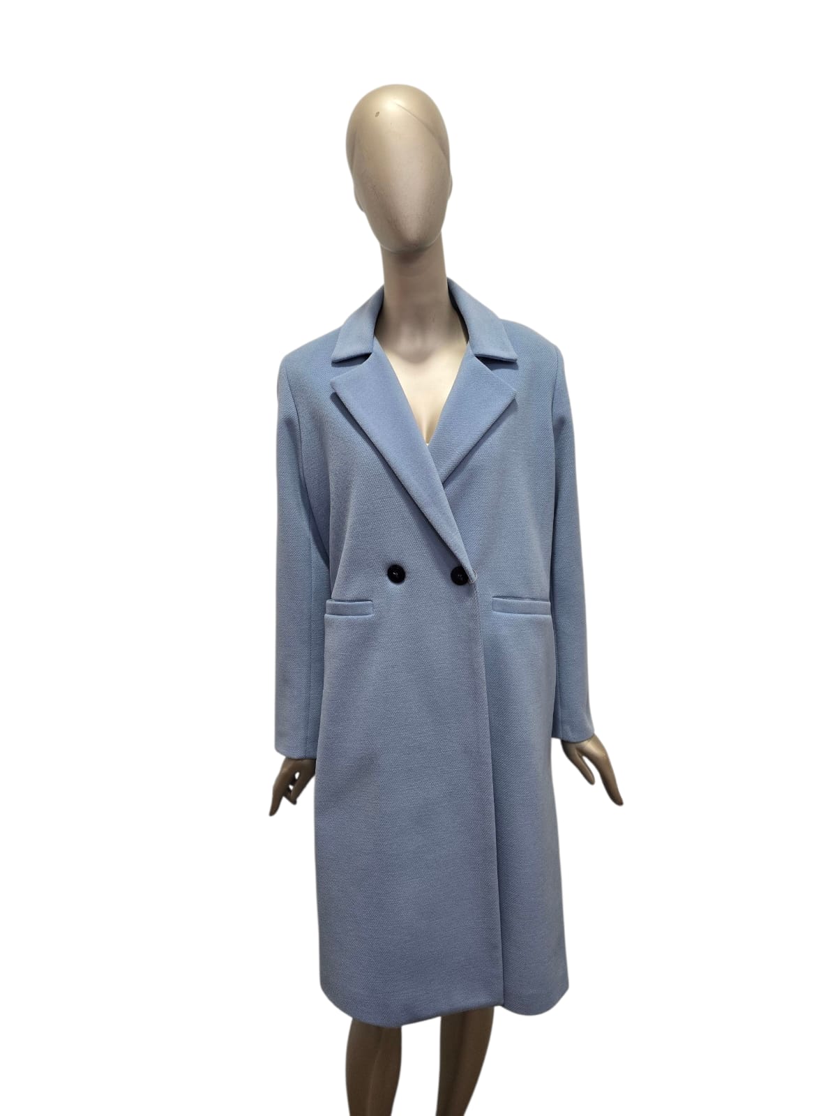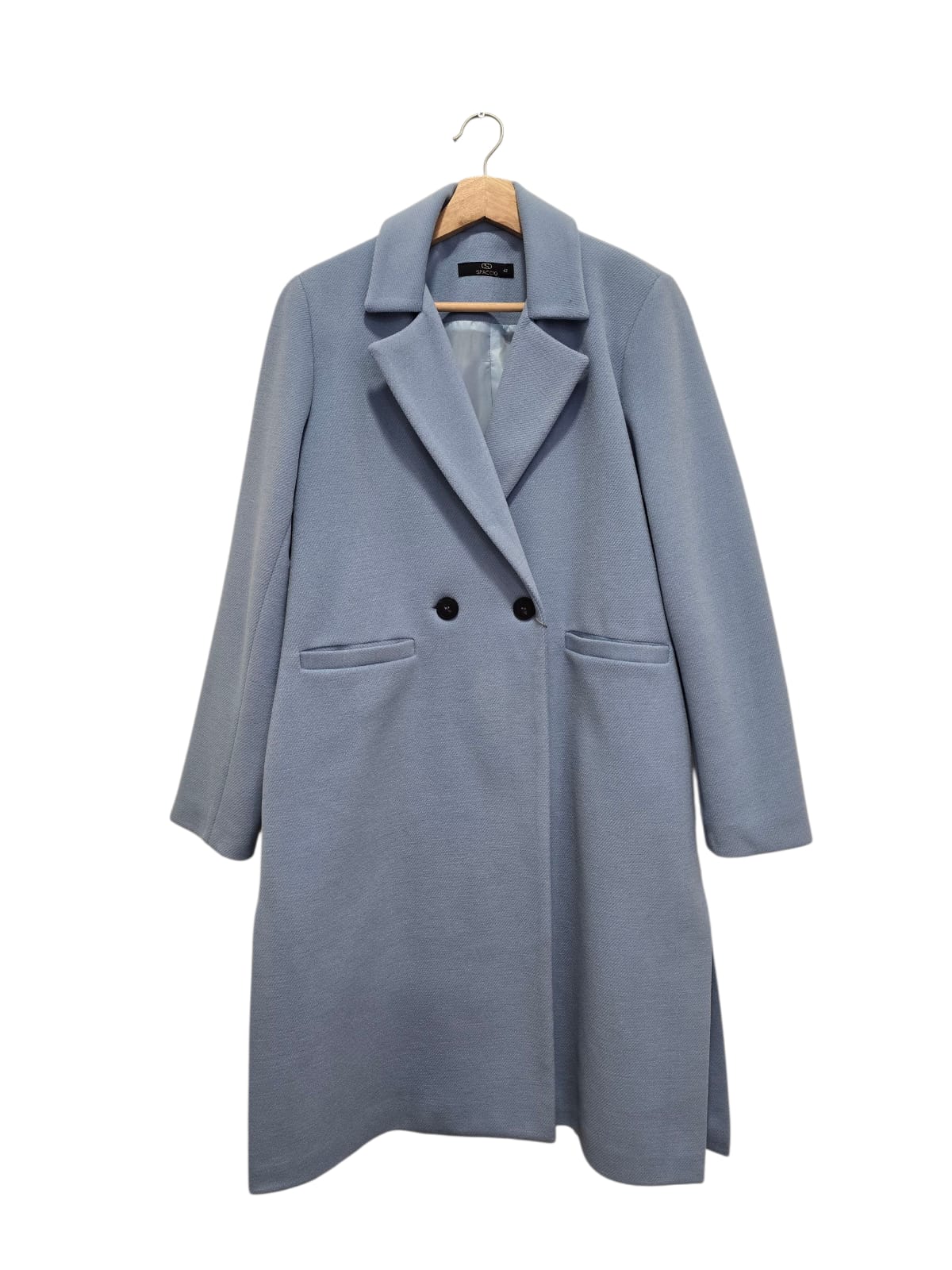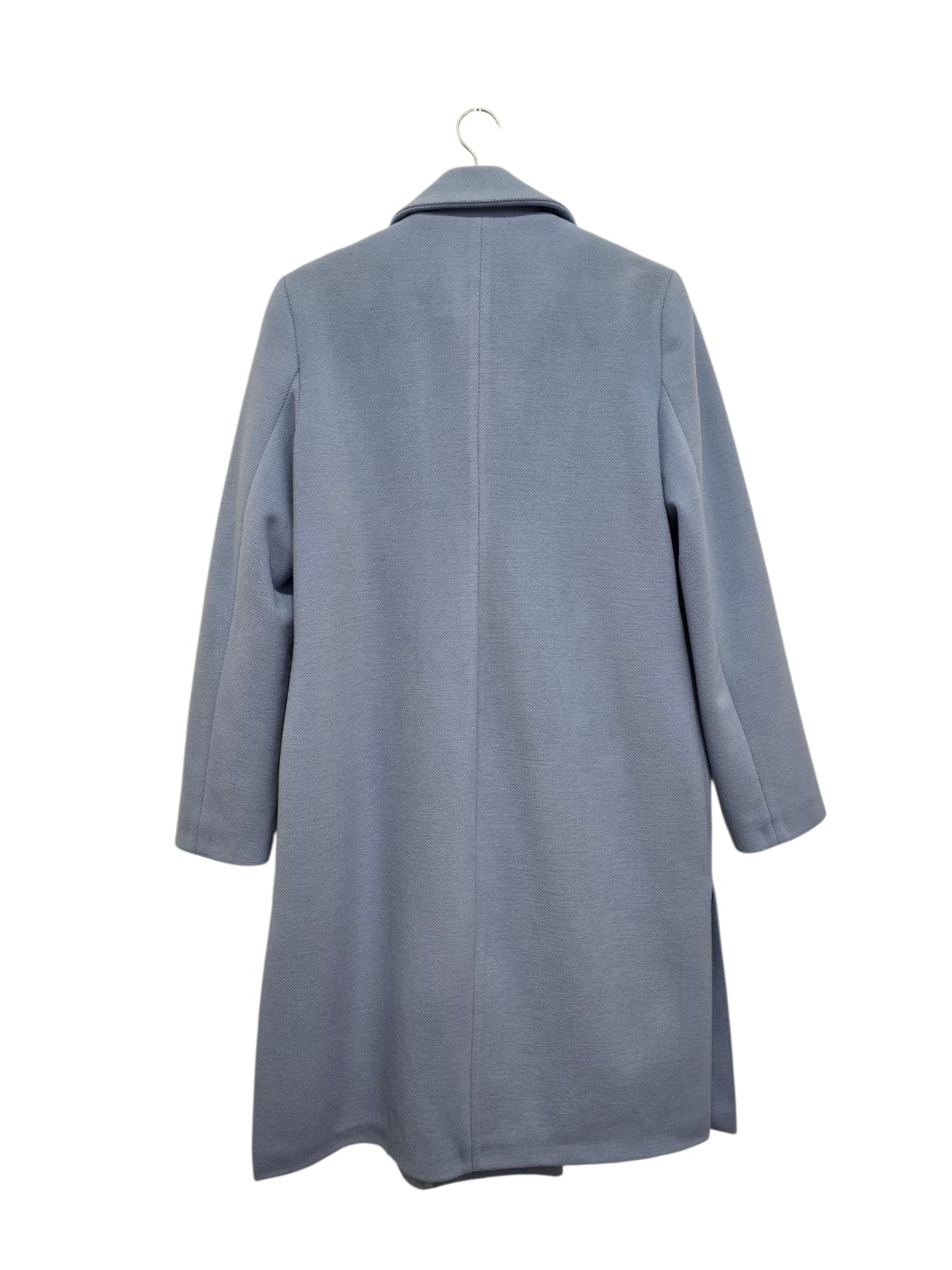 Sobretudo azul claro com rachas laterais