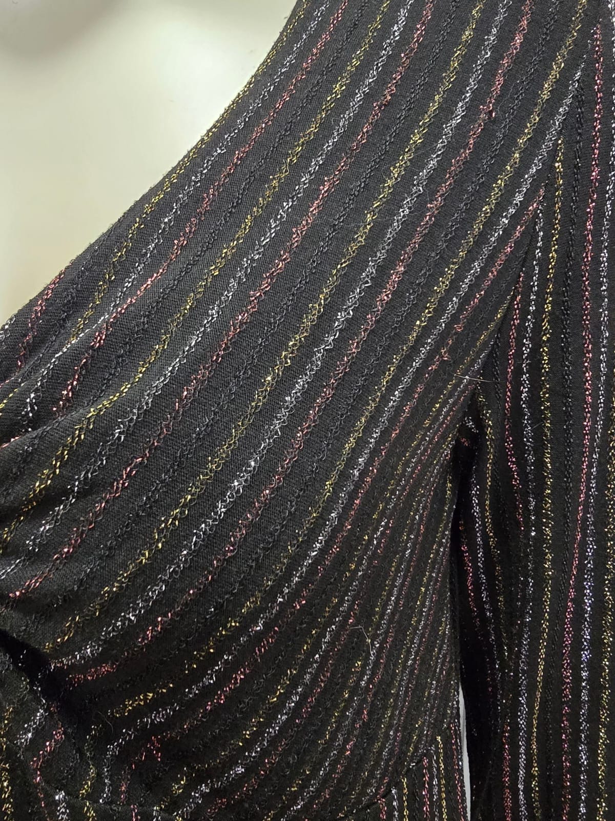 Vestido MIDI preto com linhas metalizadas da cor dourado, cobre e prateado